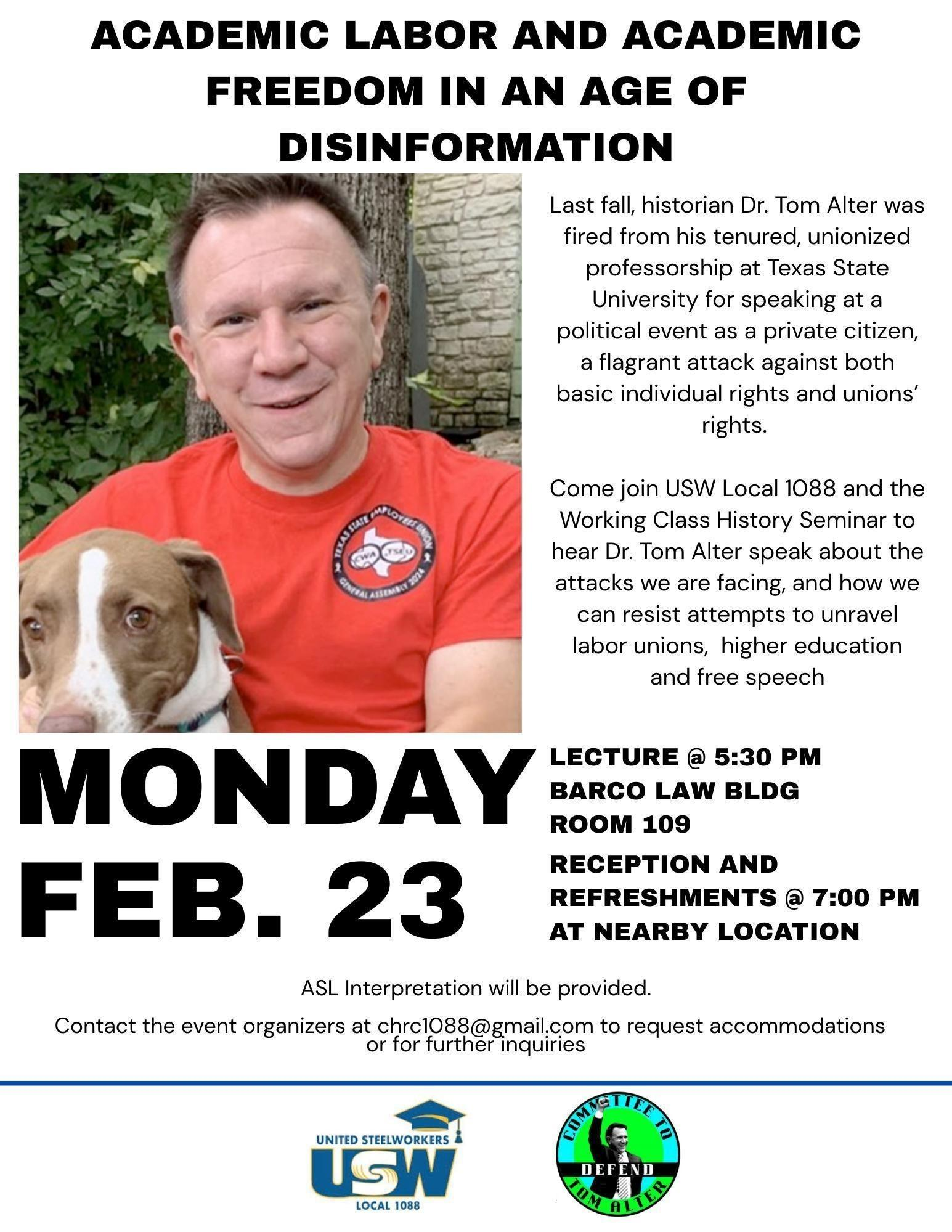 He was fired without due process, a clear violation of both Texas State University policy and Texas state law. Alter is a published labor historian, a popular teacher and adviser, a proud union member, a father of two, and a socialist activist.