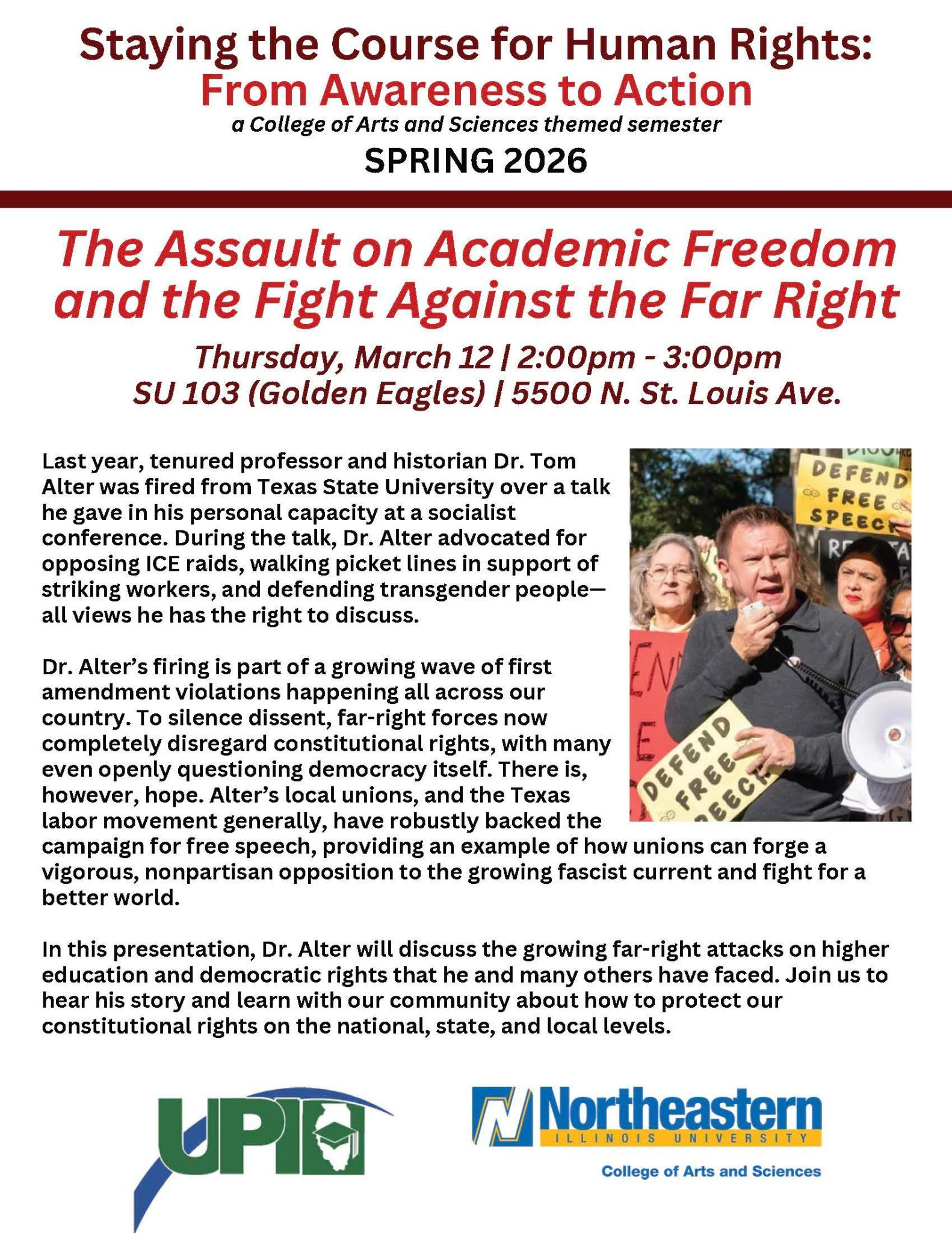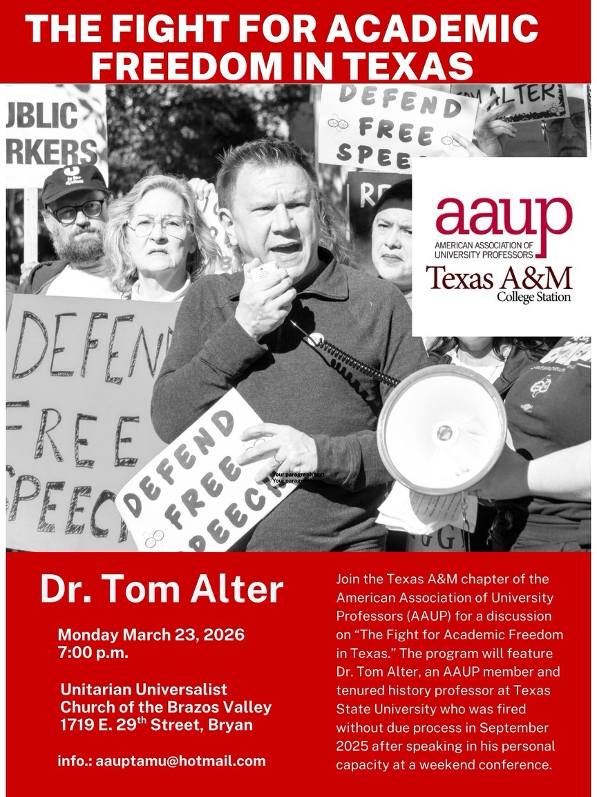 On September 10th, 2025, Dr. Tom Alter, a respected and tenured professor of history at Texas State University, was fired for remarks he made at a socialist conference in his capacity as a private citizen.